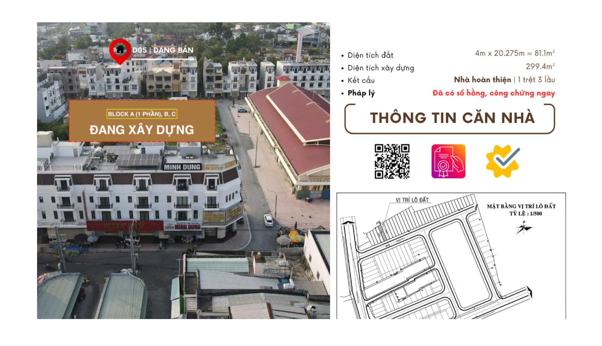 Chợ Cái Vồn, thị xã Bình Minh với diện tích 3.948 m2 được xây dựng trên nền chợ cũ dự kiến sẽ thu hút lượng khách hàng rất lớn trong khu vực. Nơi đây từ lâu được biết đến là trung tâm tài chính của thị xã Bình Minh với mật độ dân số “đặc biệt lớn”. Chào mừng TX.Bình Minh trở thành đô thị loại 3, chủ đầu tư dự án là Công ty TNHH Đầu tư và Phát triển Hạ tầng Kỹ thuật Bình Minh đã chính thức ra mắt tổ hợp dự án gồm 103 căn nhà phố thương mại mặt tiền Chợ.
