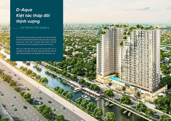 Bên thế đất toạ lạc nơi những dòng sông tràn ngập không khí thịnh vượng, D-Aqua hiện diện vững chắc với thiết kế tòa tháp đôi, mô phỏng nhịp điệu “trên thuyền dưới thuyền”, kế thừa dòng chảy lịch sử vùng đất Rạch Chợ Lớn.